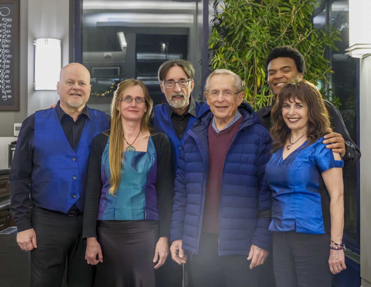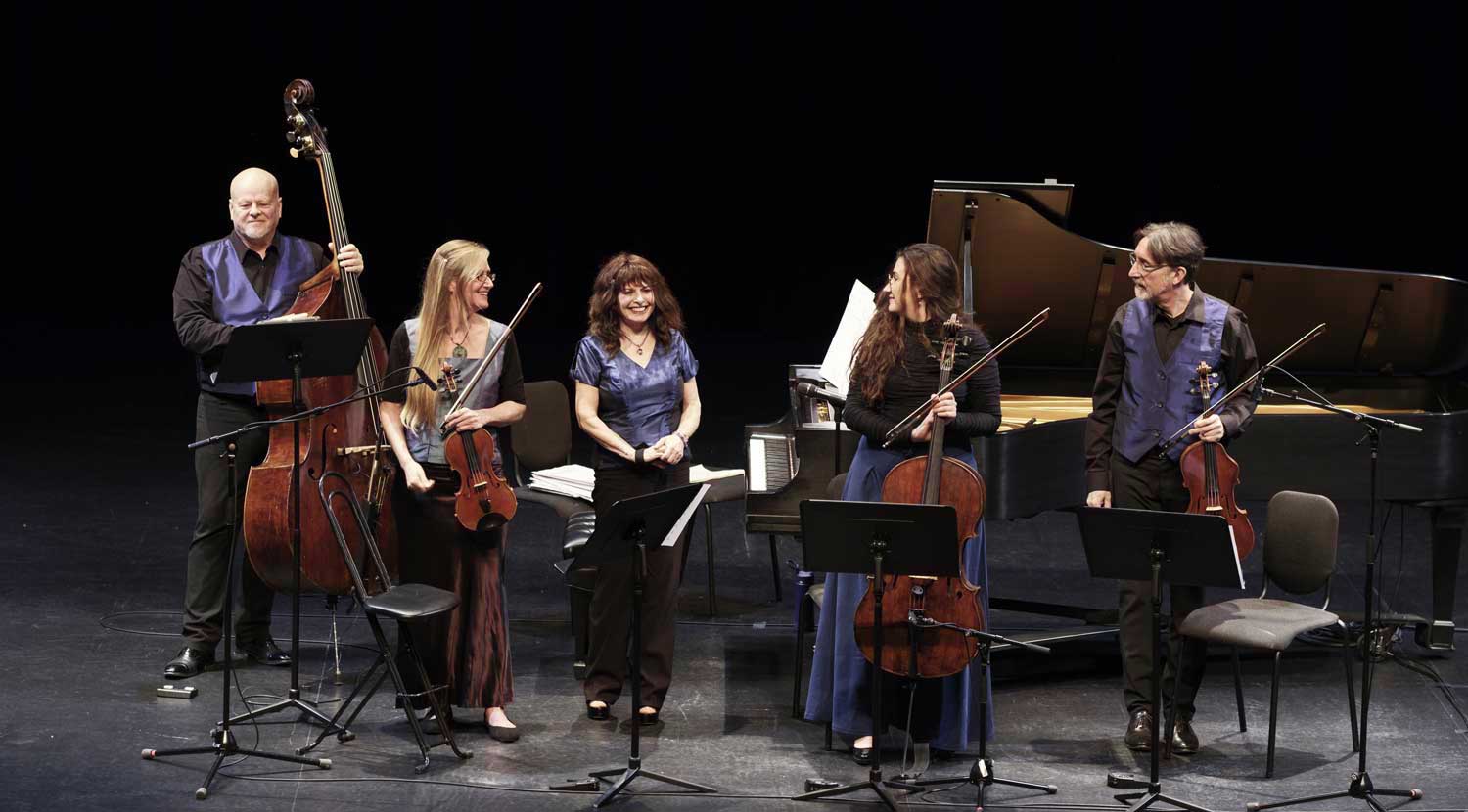 L to R: Ensemble Vivant’s George Koller, bass; Sarah Boyer, violin; Norman Hathaway, viola; Charles Mills; Ismael Paris, Euterpe: Music Is The Key’s Youth Ambassador, and guest performer on Ensemble Vivant’s concert; Ensemble Vivant’s Catherine Wilson, piano/artistic director